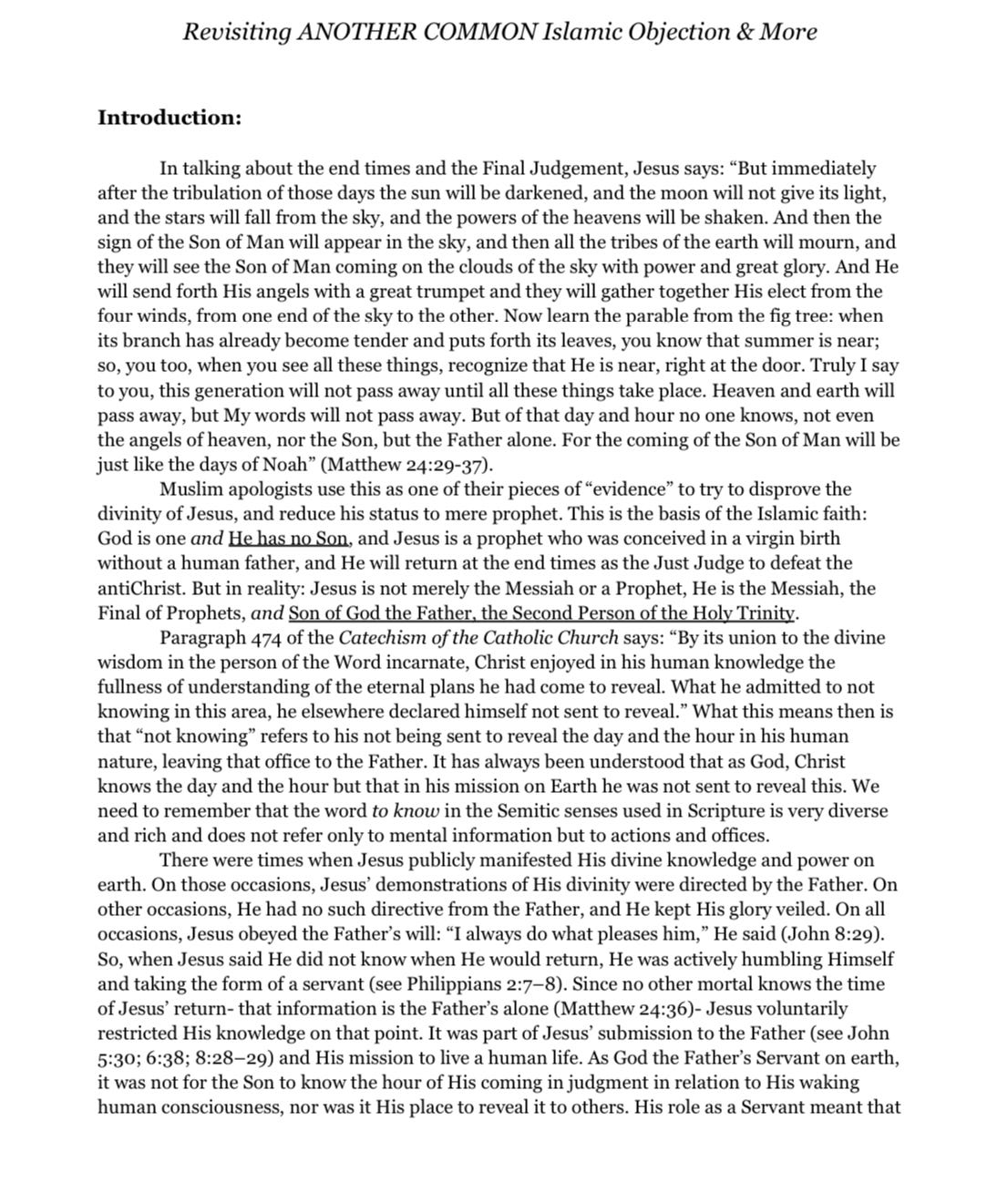 I’m back with another response to Islamic objections to Christianity, along with many others which I go through in this essay: please check it out below! I will be sharing this with my Muslim coworker who talked theology with me a few times before, and the other day brought up this argument to another worker other than myself, so please pray for him to open up his heart to the Gospel and convert! Christ is King! 🙏✝️